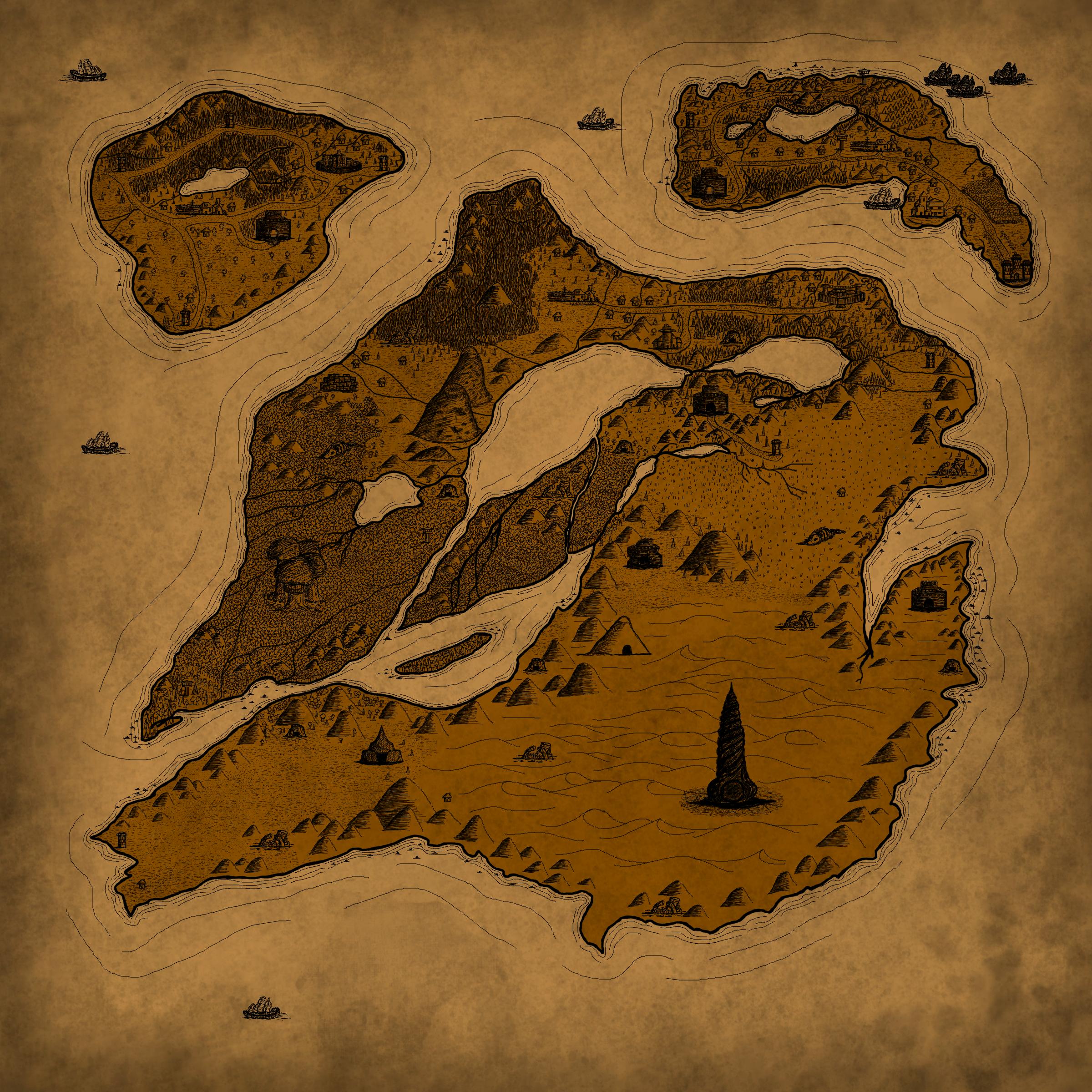 This is the world map. I have another version with all the locations marked, but I'm keeping it for now. I might reveal it later. I am not an expert cartographer, but I tried to make it as realistic as possible whilst keeping it fantasy themed.