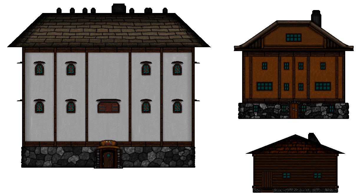 Some houses and establishments you'll find in your travels! The architectural style will differ from one place to another.